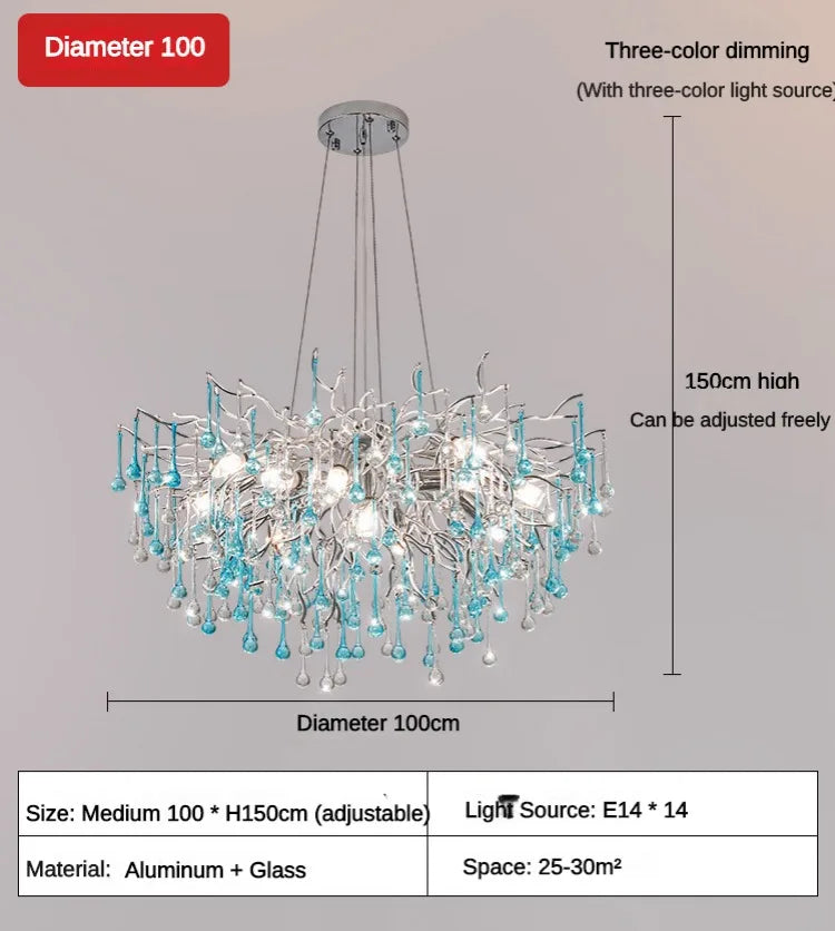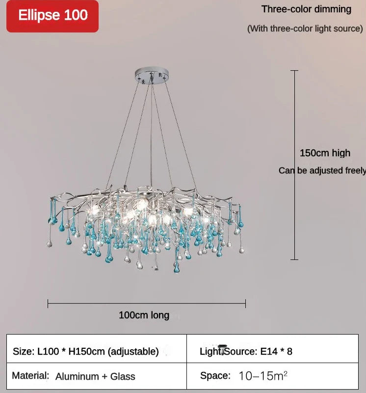 - Luxurious Blue Water Droplets: This chandelier features enchanting blue water droplets, creating a captivating and visually striking centerpiece in any space.