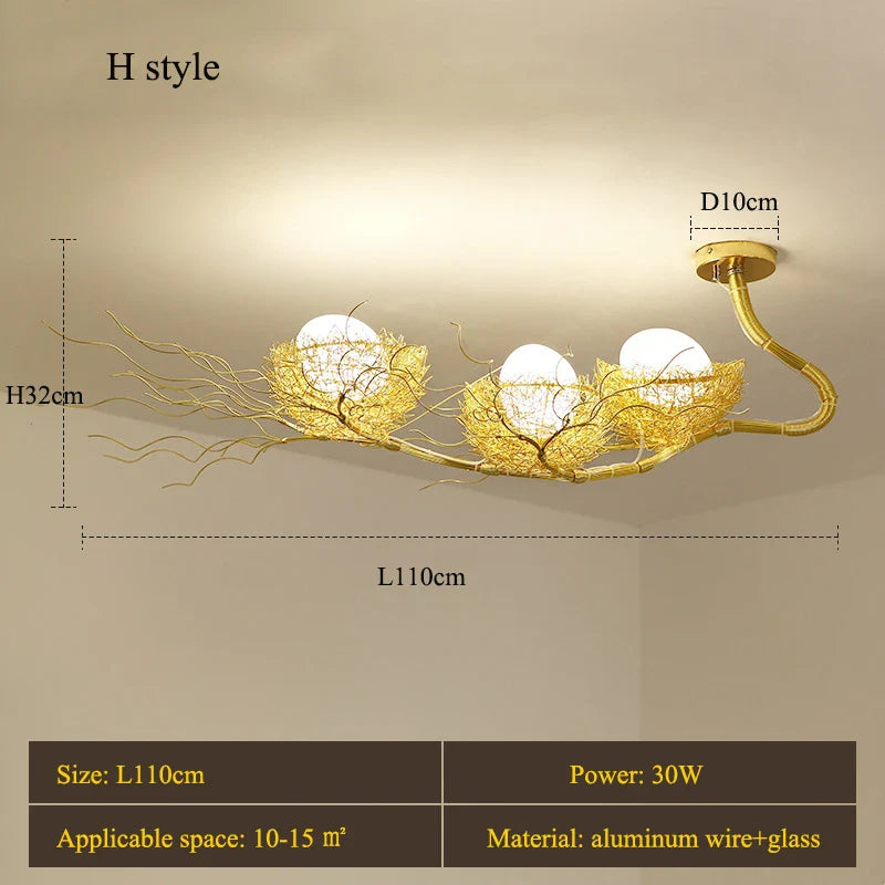 Transform your living, dining, kitchen, bedroom, loft, or any space you desire with these Modern LED Gold Bird's Nest Chandeliers. Their unique design and elegant aesthetics will infuse your space with a contemporary and sophisticated ambiance, while energy-efficient LED lighting ensures long-lasting brilliance. Don't miss the chance to enhance your chosen areas with these captivating lighting fixtures.