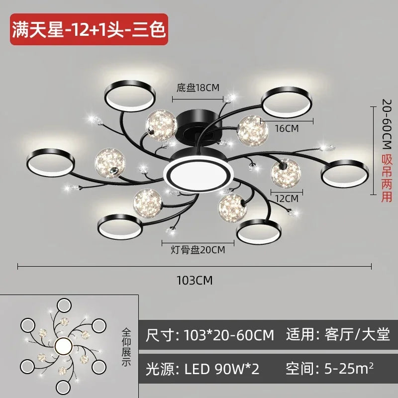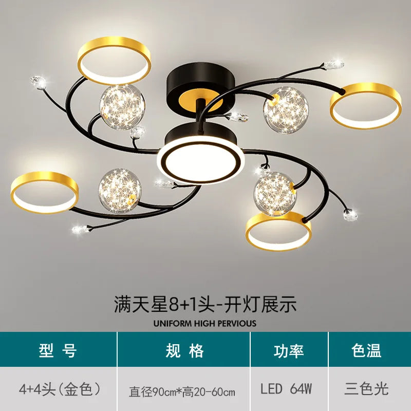 Transform your living spaces with the Black Ceiling Chandeliers and let their modern design and romantic starry gold creative lighting create an ambiance of timeless beauty and artistic inspiration in your home.