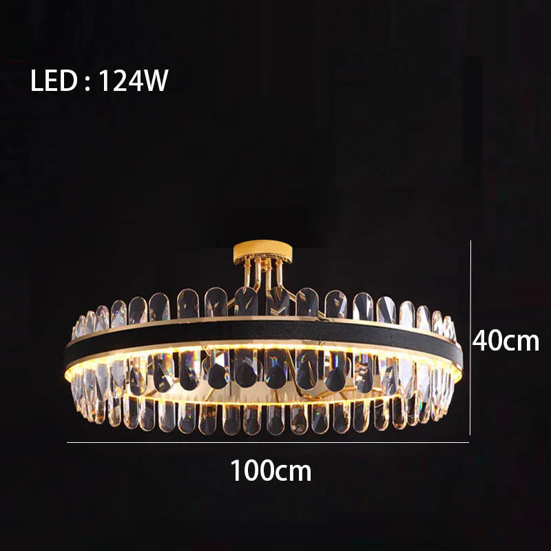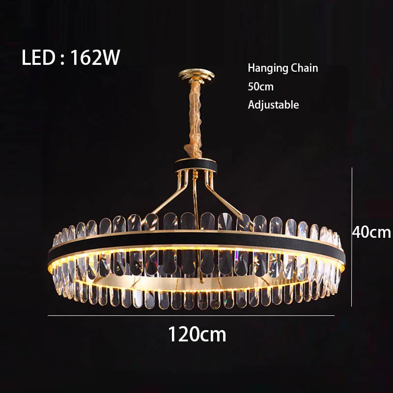 Dimmable LED Crystal Oval Ceiling Chandeliers - Black Leather Luxury Lustres for Dining Room Decor