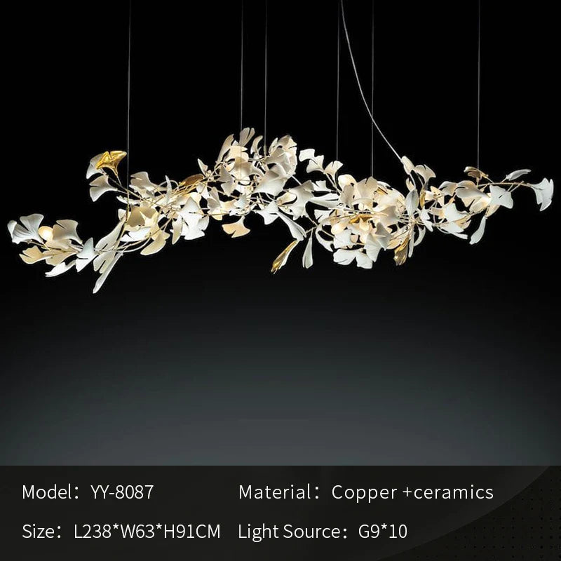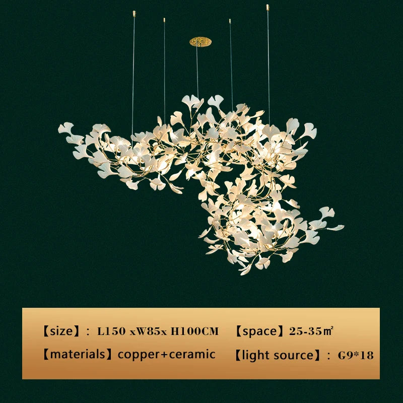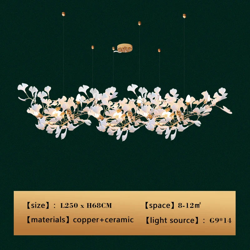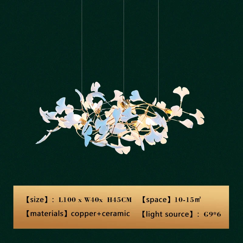 New gold chandelier white ceramic leaf lamp indoor home living room decorative lamp French luxury staircase ceiling lamp
