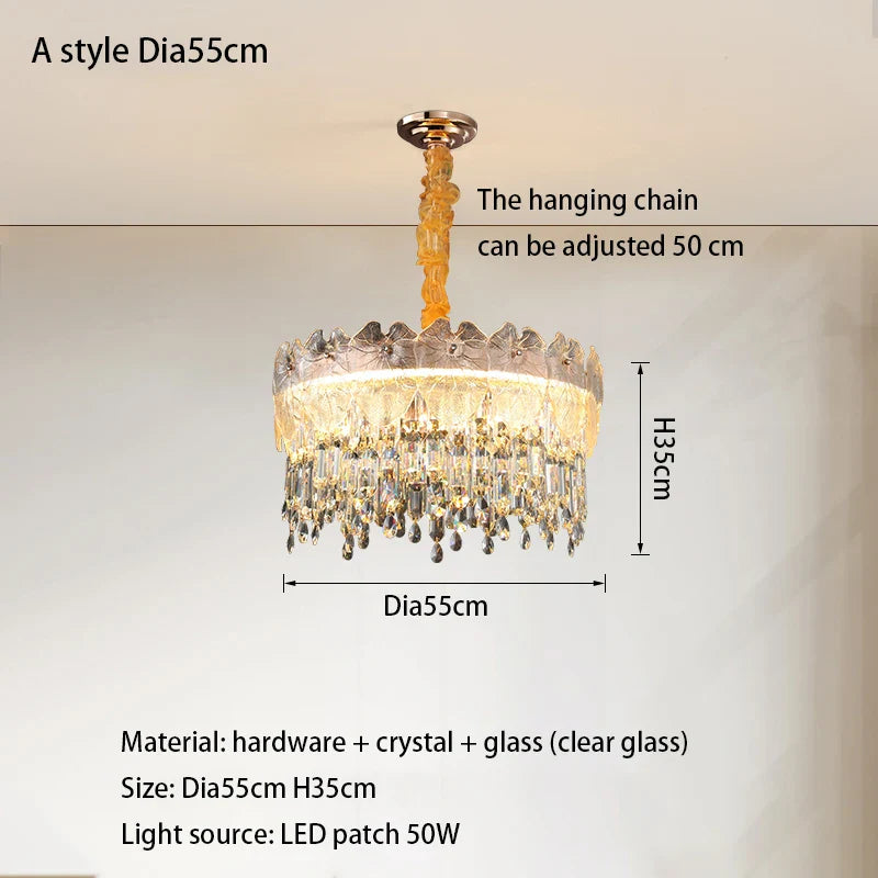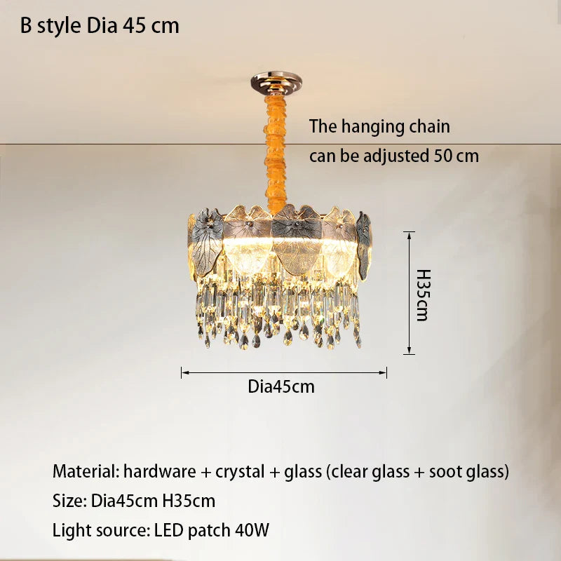 2. Gold and Crystal Elegance: Adorned with gold and crystal elements, this fixture creates a dazzling play of light, adding a touch of luxury and enhancing the overall ambiance of the room.