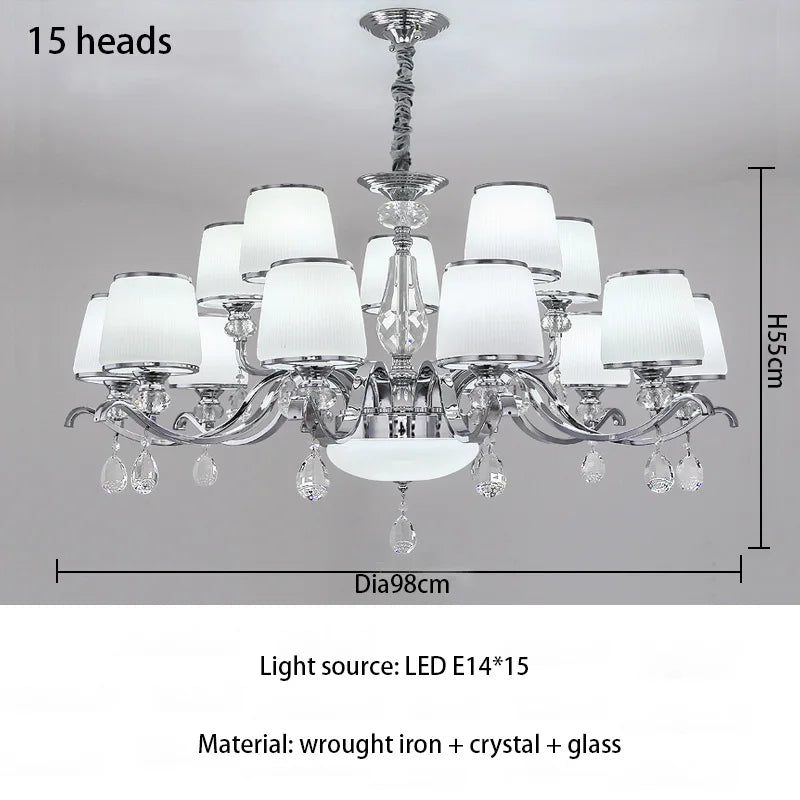Elevate the ambiance of your living spaces with the captivating allure of this European Chrome Crystal Chandelier. Illuminate your home with elegance, postmodern simplicity, and the timeless charm of crystal, creating an inviting and sophisticated atmosphere that leaves a lasting impression.