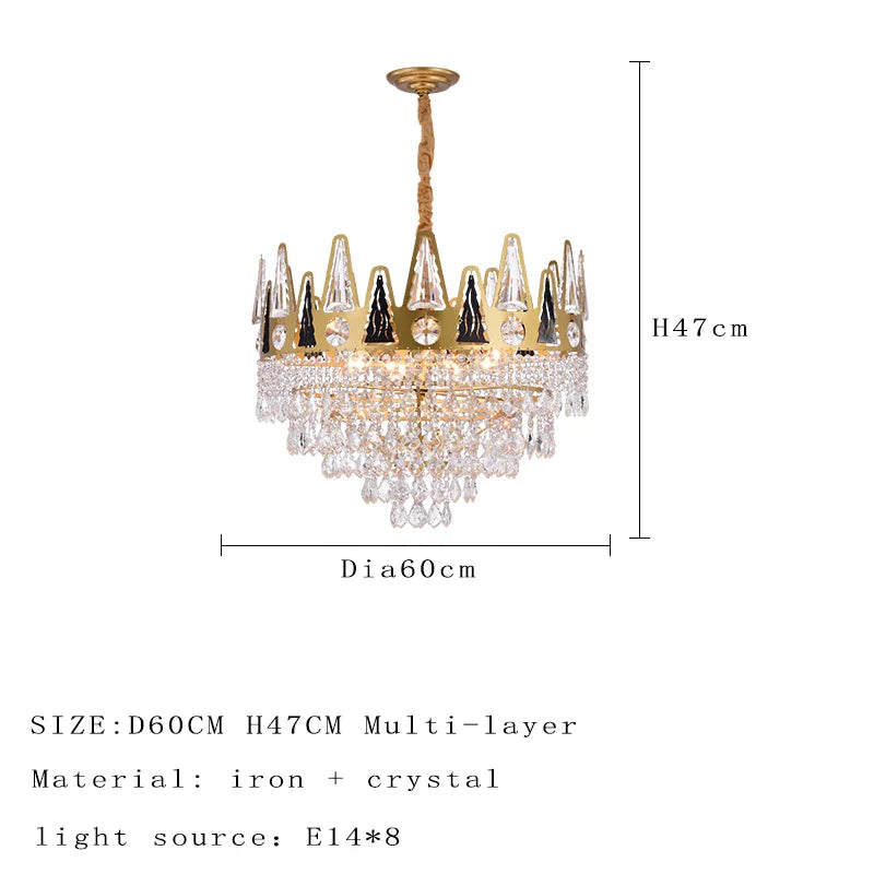 Elegant French Pastoral Golden Crystal Chandelier - Perfect for Living Rooms, Dining Rooms, Bedrooms, and Entrances