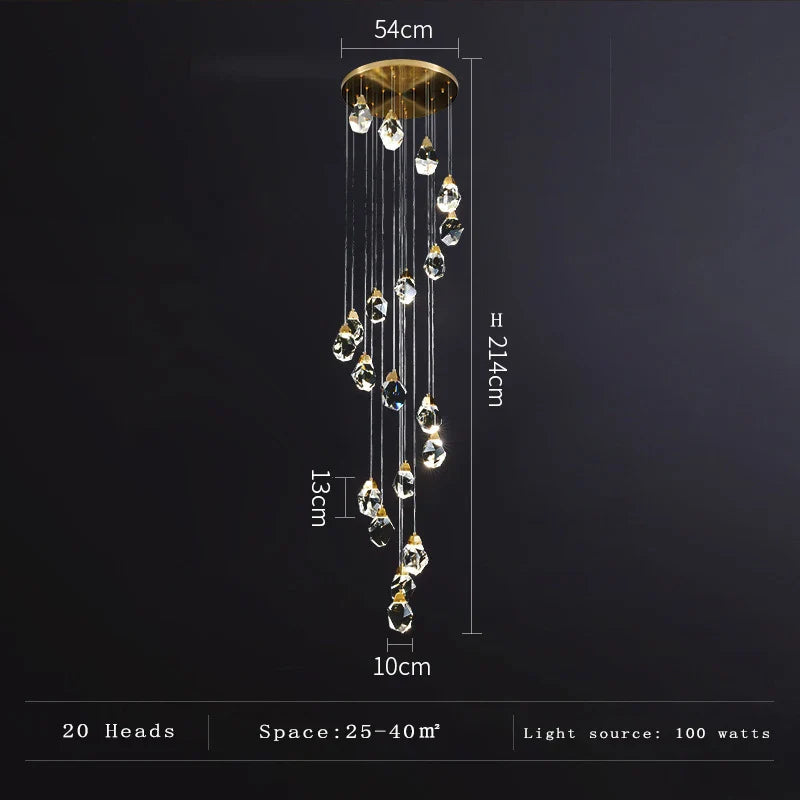 Enhance the elegance of your staircase, living room, duplex, villa, or middle building with our exquisite Modern Simple Light Luxury Crystal Chandelier. This chandelier embodies modern simplicity and luxury, creating a stunning focal point in a variety of spaces.