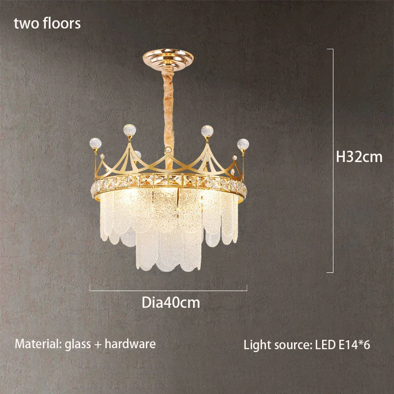 1. Crown K9 Crystal: Adorned with K9 crystal elements in a crown design, this chandelier exudes opulence and sophistication, making it a stunning focal point in any room.