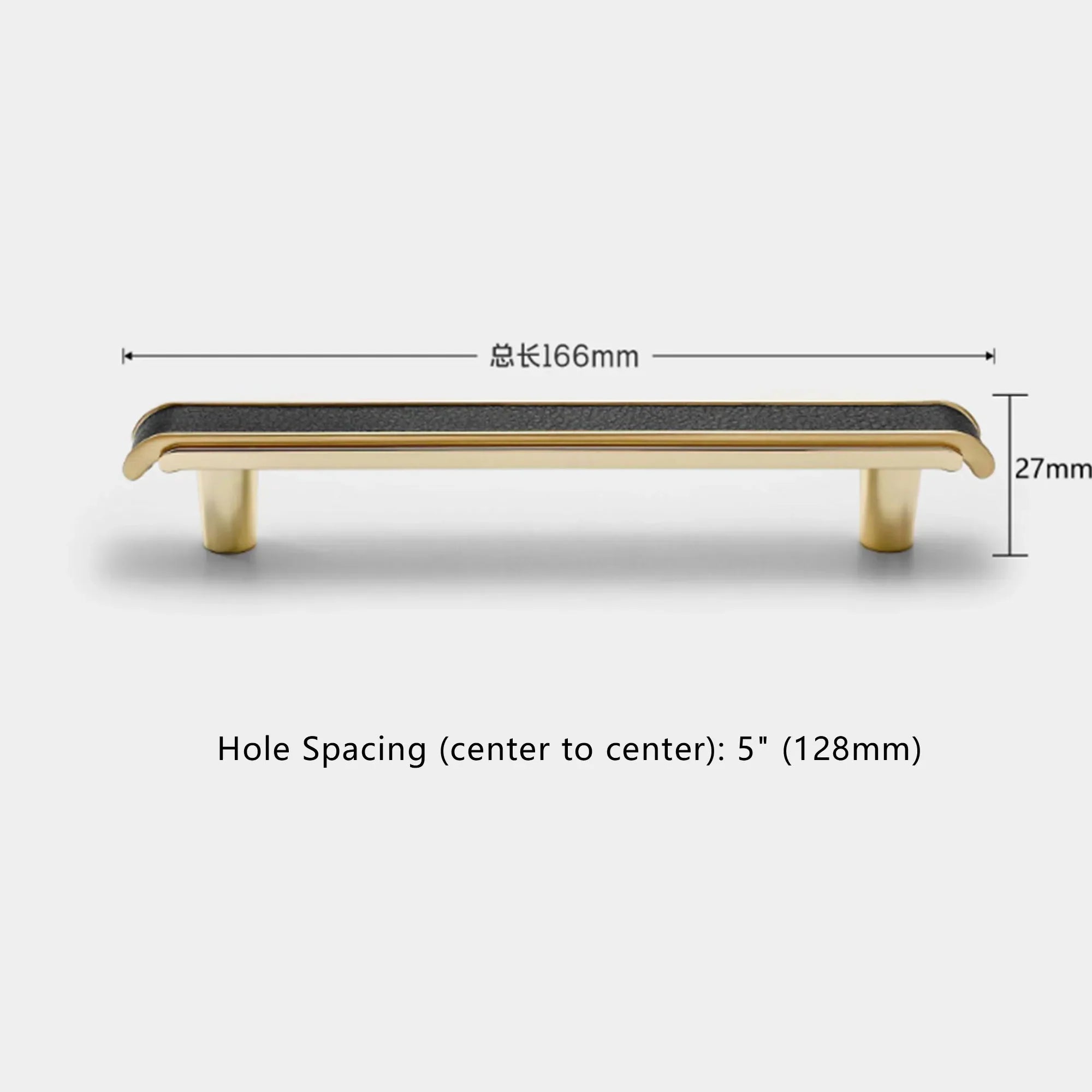 Black Leather and Gold Zinc Alloy Cabinet Handle – Luxury Drawer Pull for Wardrobes and Dressers (128mm)