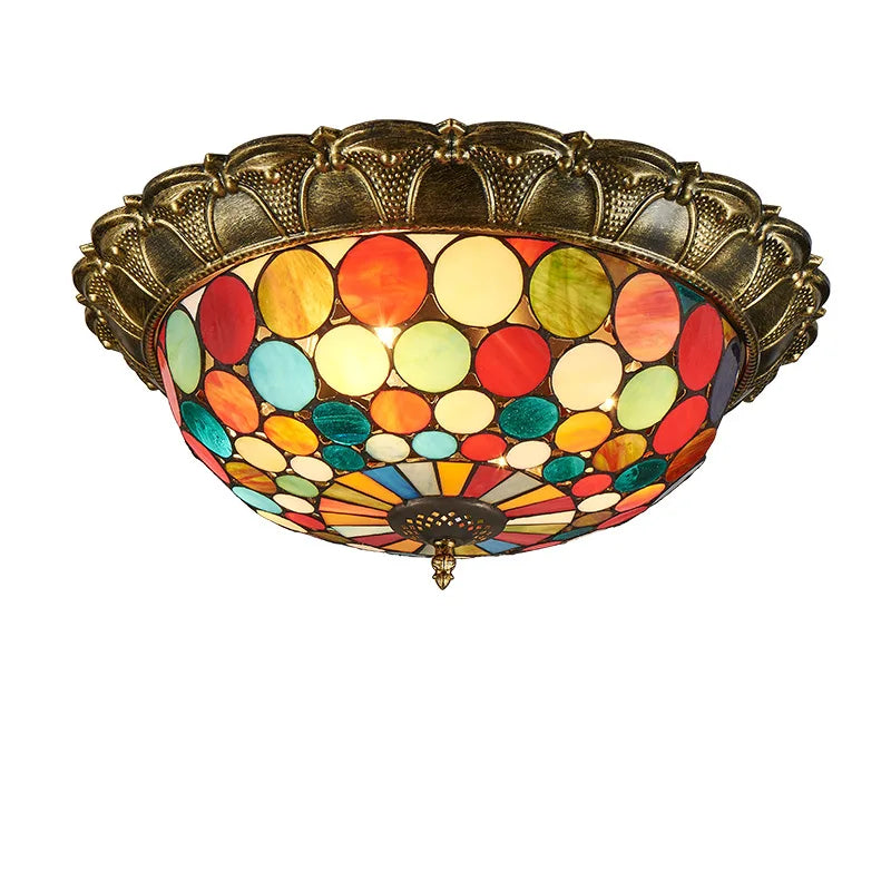 European-Style Tiffany Circular Ceiling Lamp - Retro Elegance for Living Rooms, Bedrooms, Corridors, and Balconies