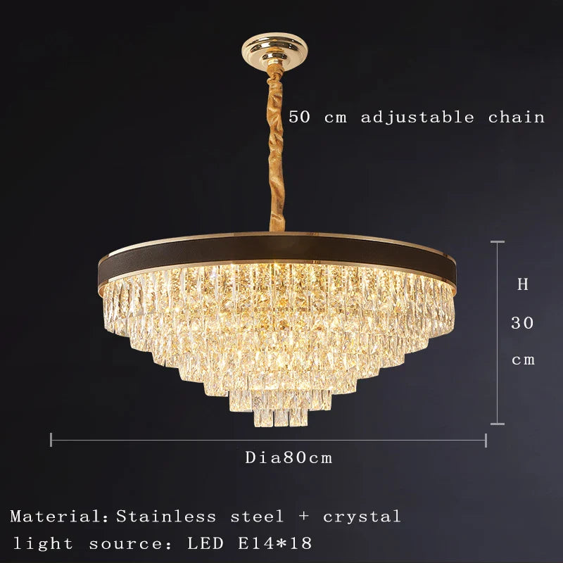 Illuminate your living room, dining room, bedroom, or even engineering villa with our exquisite Postmodern Light Luxury Black Chandelier. This round crystal-adorned masterpiece combines contemporary elegance with a touch of luxury to transform your space into a haven of sophistication.
