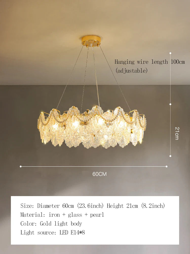 Elevate your interior decor with the French Light Luxury Glass Chandelier, a harmonious blend of timeless elegance and modern aesthetics that brings a touch of luxury to your home.