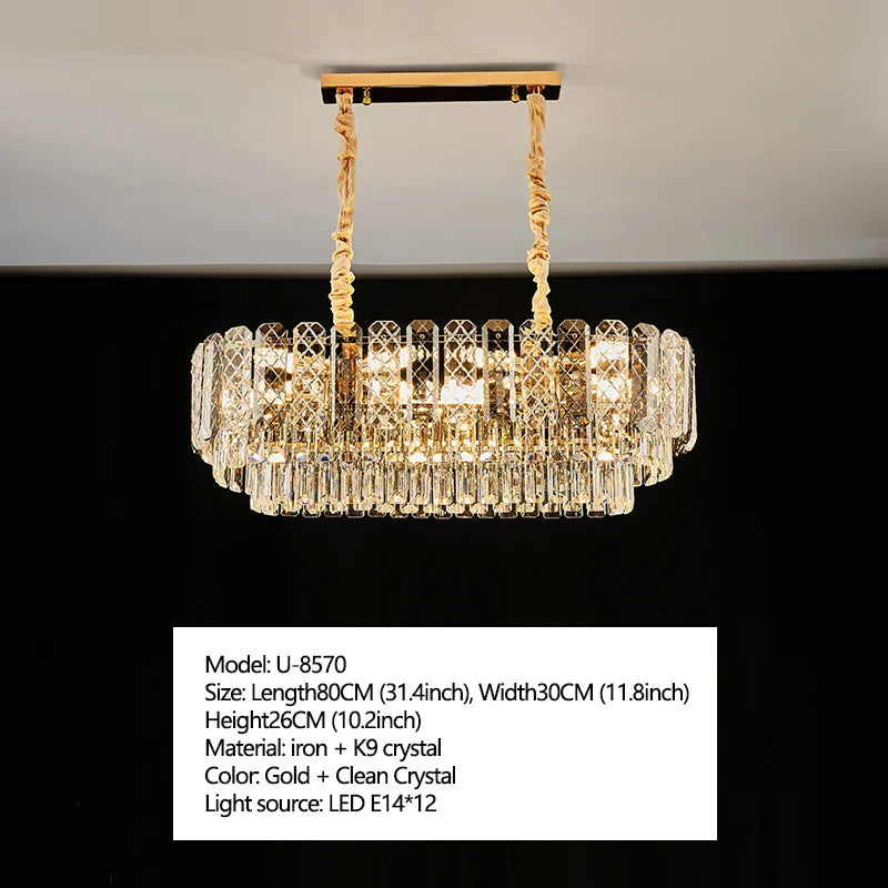 K9 Crystal Brilliance: Adorned with K9 crystals, this fixture exudes opulence and creates a dazzling play of light and shadow, enhancing the overall ambiance of the dining room.