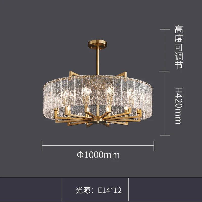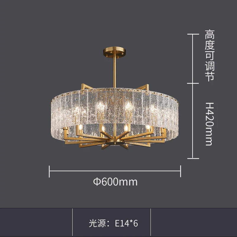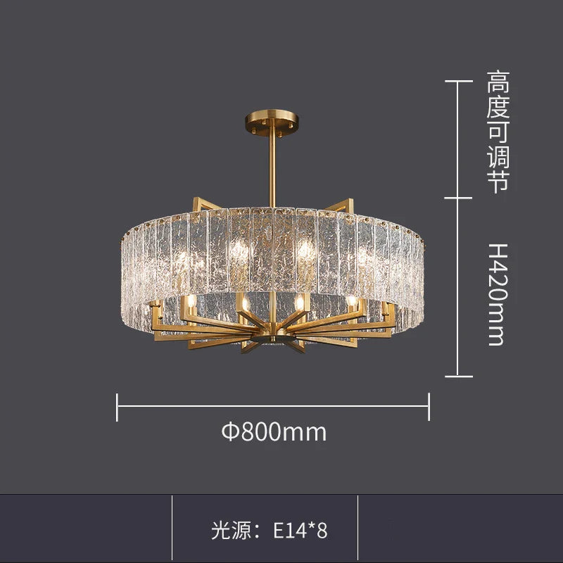1. Luxurious Round Design: This chandelier showcases a luxurious round glass design, making it an ideal addition to modern interior settings with a focus on elegance.