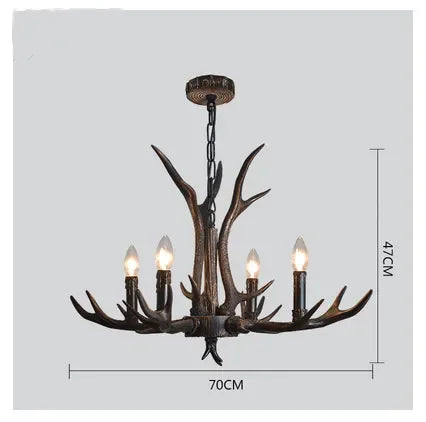 Please feel free to use this revised content for your product listings to optimize them for SEO and showcase the retro elegance of your Antler Resin Chandelier to potential customers.