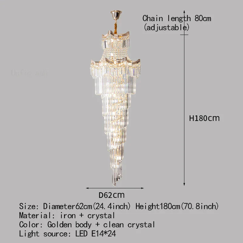 Elevate the ambiance of your villa's living room with our New Design Crystal Chandelier. This exquisite lighting fixture embodies a new design, offering grandeur and opulence, making it perfect for high ceilings, hotel lobbies, and staircase illumination. This large chandelier stands as a captivating and stylish lighting solution that enhances the overall beauty and sophistication of your interior decor. Illuminate your space with the warm and inviting glow of this elegant long chandelier.