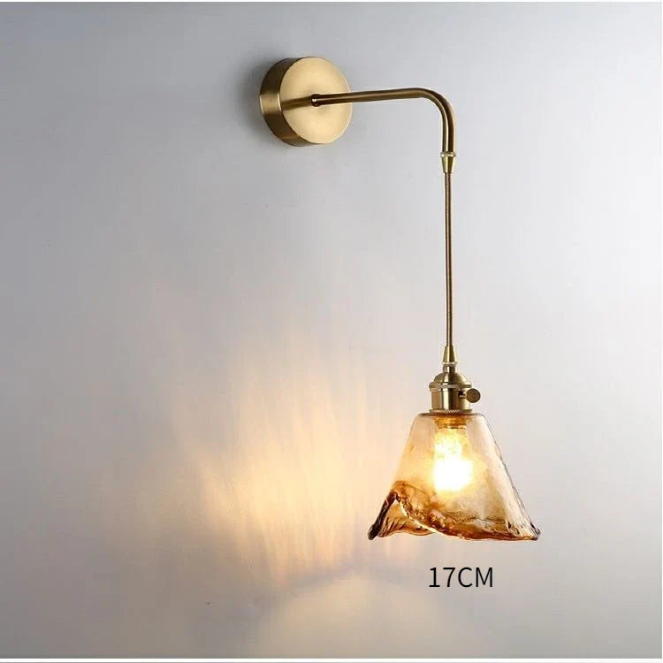 Modern Glass Wall Sconce Light Fixture - Elegant Bedroom, Restaurant, and Corridor Decor with Copper Flower Plug