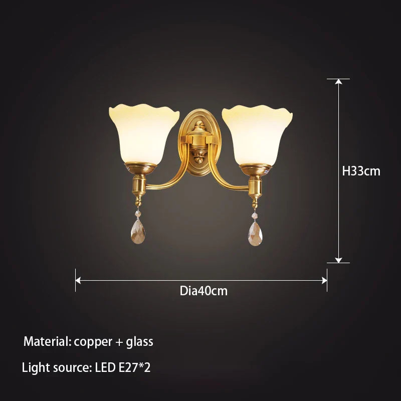 Sophia - European-style Glass Wall Lamp Warm Living Room TV Background Wall Bedroom Bedside Double Head All Copper Simple Wall Lamp