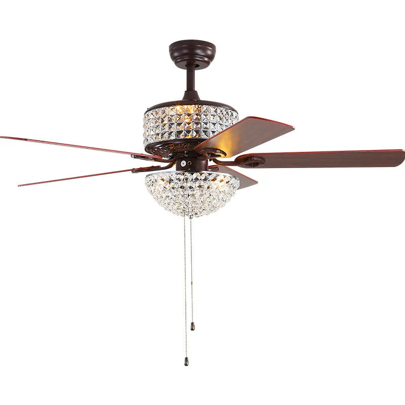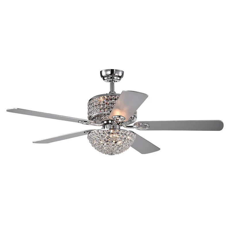 52 Inch Crystal Ceiling Fan with Lights Chrome Chandelier Remote Control Reversible Wood Blades for Living Room Bedroom