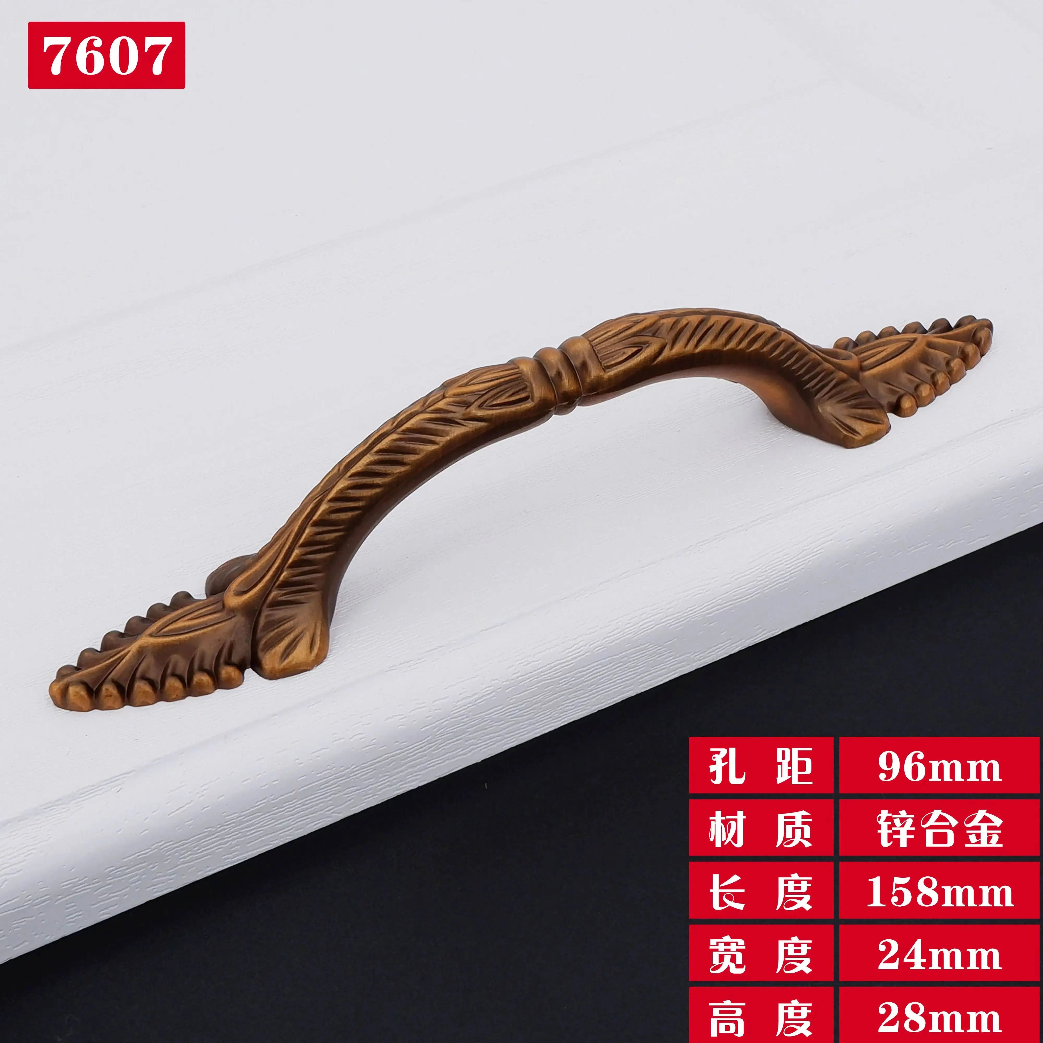 Antique Yellow Bronze Cabinet Handles - Brushed Vintage Drawer Pulls for Kitchen and Wardrobe Doors