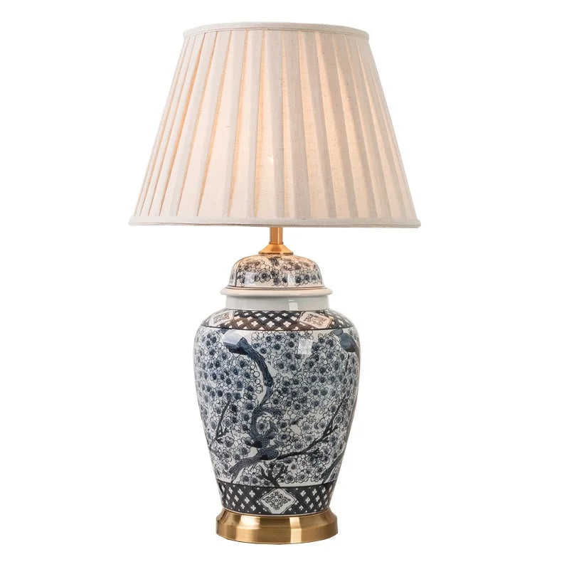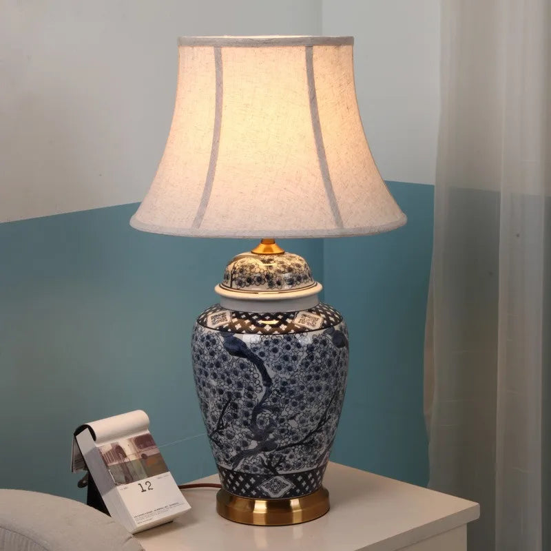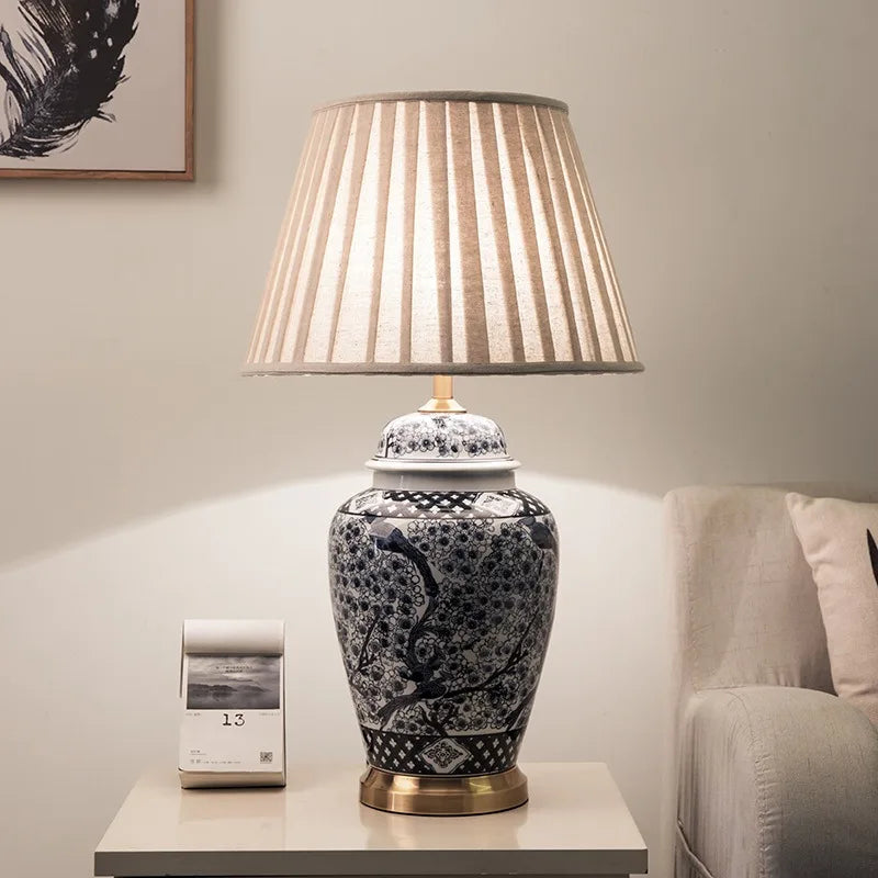 Blue and White Ceramic LED Floor Lamp for Bedroom and Living Spaces