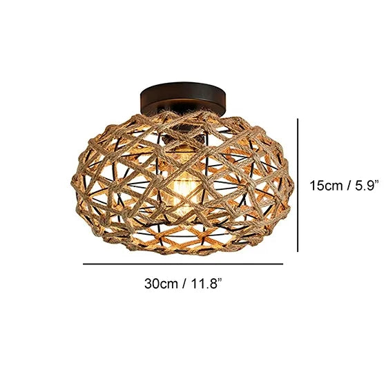 Elevate your decor with the Boho Hemp Rope Cage Semi Flush Mount Ceiling Light, a rustic and bohemian-inspired lighting fixture that brings retro elegance to your bedroom and beyond. Crafted with woven hemp rope and rattan wicker, it's a unique decor piece that adds warmth and character to your living spaces. Enjoy the artistic and nostalgic ambiance it creates, transforming your space into a rustic retreat.