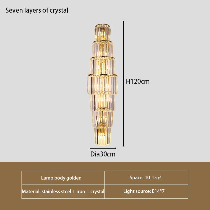 Elevate the ambiance of your hotel lobby, clubhouse, villa, living room, or banquet hall with the opulent Brooklyn Hotel Lobby Crystal Wall Lamp. This exquisite lighting fixture exudes sophistication and luxury, adding a touch of grandeur to any space. With voltage compatibility from AC 90-260V, you have the flexibility to install it in various settings. Choose from a selection of elegant color options, as shown in the figure, and enjoy a free light source that can change color in three different tones to set the perfect mood.