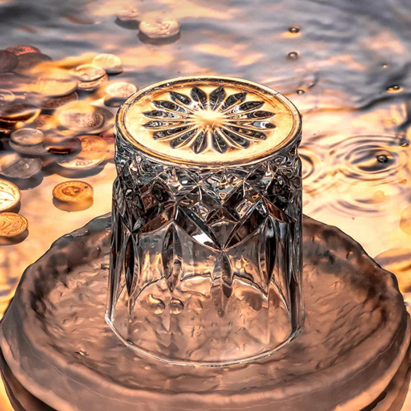 Dlight Decor 2pc 230ml Crystal Embossed Glass Cup Set – Whiskey, Wine & Water
