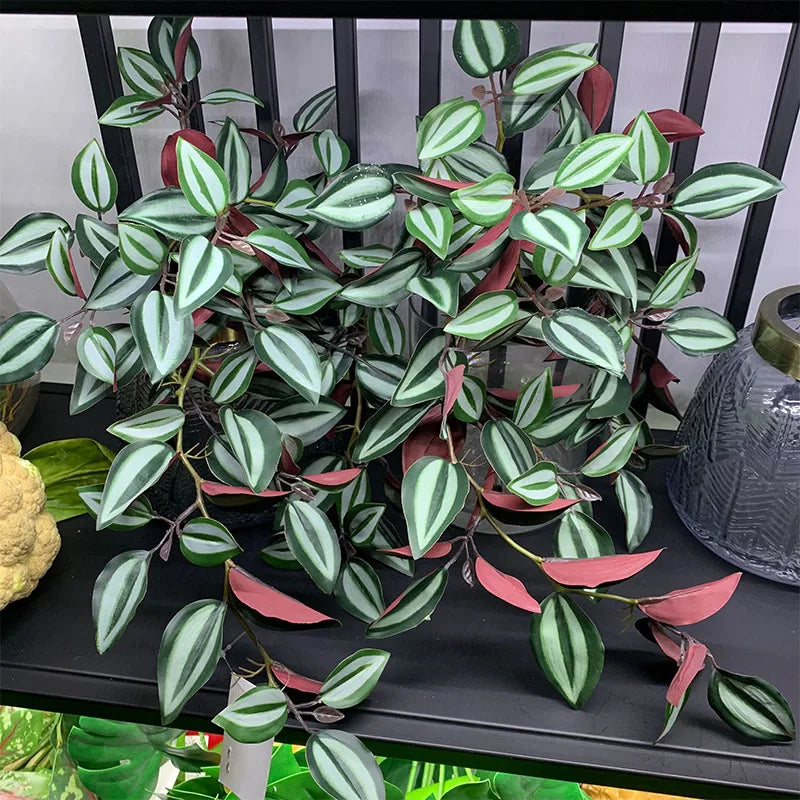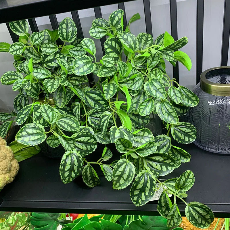 Whether draped along balcony railings layered onto wall hooks or styled as part of a wedding backdrop this hanging plant delivers subtle texture and color without the need for maintenance. The lifelike foliage mimics the shape of scindapsus aureus leaves offering a realistic and calming display for any room.