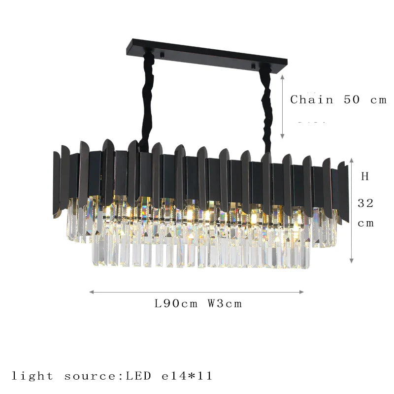 Elevate the ambiance of your living room or bedroom with our exquisite Postmodern Black Crystal Chandelier. This chandelier seamlessly blends the opulence of crystal with modern minimalism and a touch of American retro design, creating a captivating centerpiece in your home.
