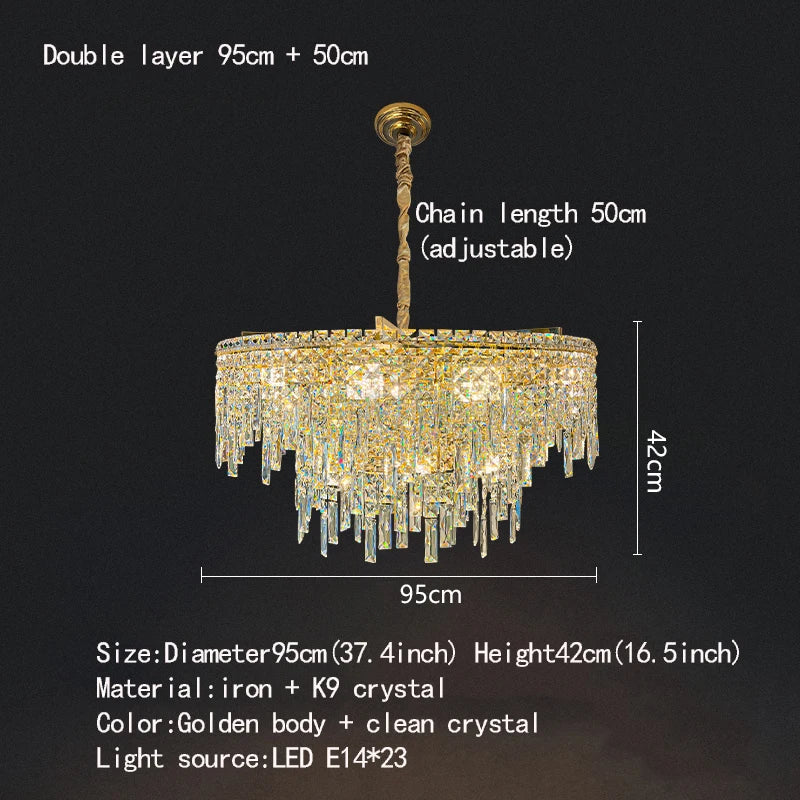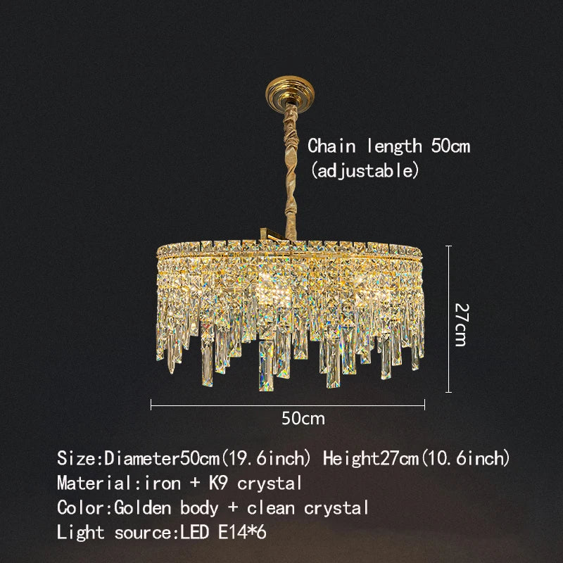 Elevate the ambiance of your living spaces with the captivating charm of this Golden Round Chandelier. Illuminate your home with modern elegance and the timeless allure of crystal, creating an inviting and sophisticated atmosphere that leaves a lasting impression.