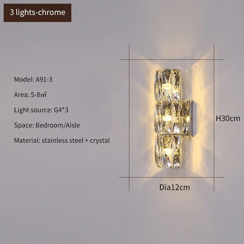 Introducing Elena's Modern Simple Crystal Wall Lamp, a symbol of contemporary luxury and high-end design that enhances the ambiance of your living room, TV background wall, corridor, bedroom, or bedside with a touch of sophistication. This exquisite wall lamp features a sleek combination of chrome and gold accents, showcasing high-quality hardware and crystal materials. It offers versatile lighting options with an LED bulb and includes the bulb for your convenience.