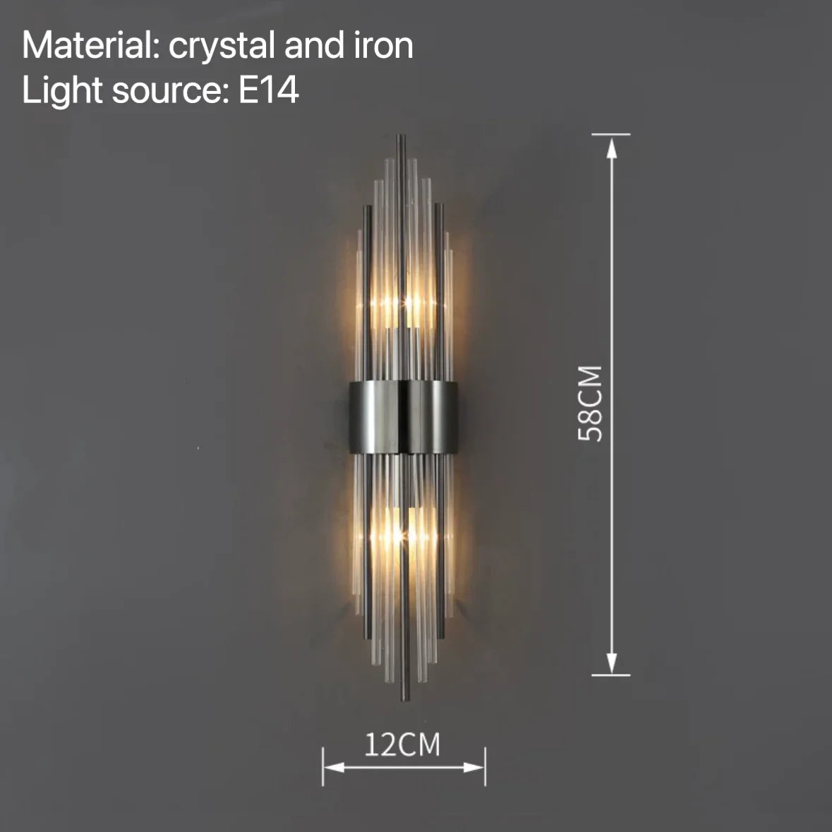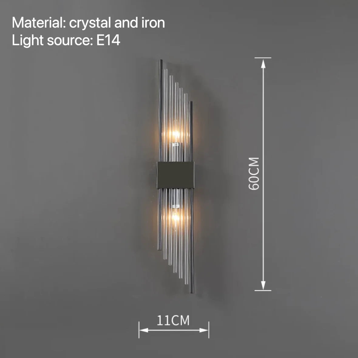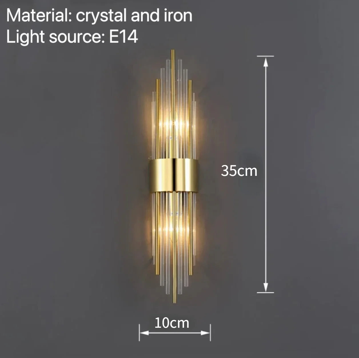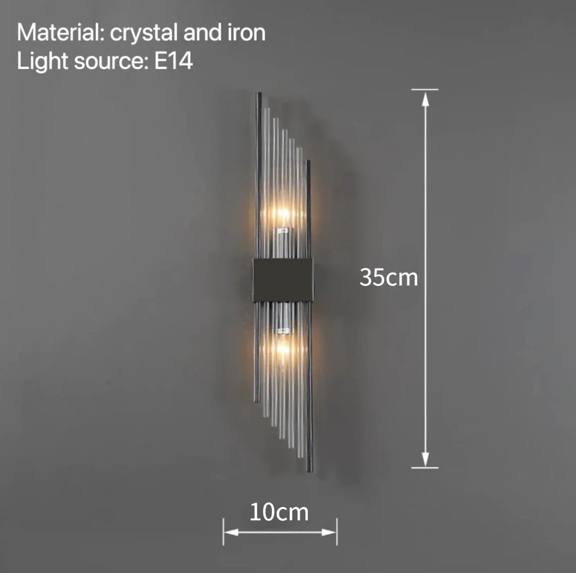 Introducing Isla's Modern Wall Lamps, a perfect choice for adding elegance and illumination to your bedroom, bedside, hotel, living room, or any space where you desire sophisticated lighting. These exquisite wall lamps are crafted with high-quality crystal and iron materials and are equipped with E14 light sources, providing a captivating and decorative lighting solution.