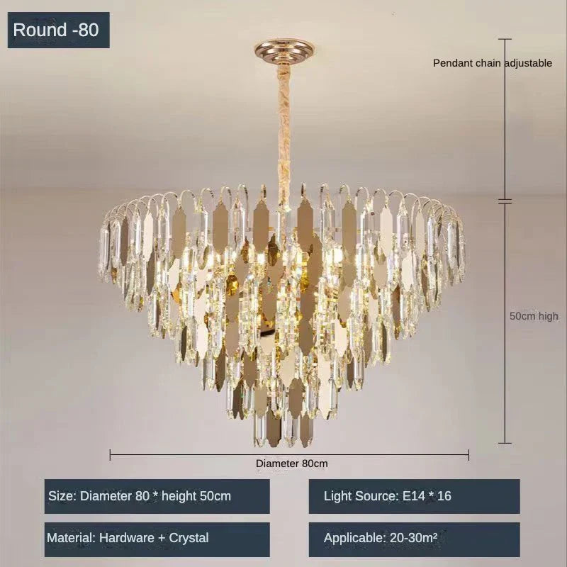 Elevate the ambiance of your home with our Modern LED Luxury Triangular Multi-Level Crystal Chandelier. This exquisite lighting fixture seamlessly blends modern design with the opulence of crystal elements. Ideal for living rooms, bedrooms, and dining spaces, it stands as an elegant and stylish lighting solution that enhances the overall beauty and sophistication of your interior decor. Illuminate your space with the warm and inviting glow of this luxurious chandelier.