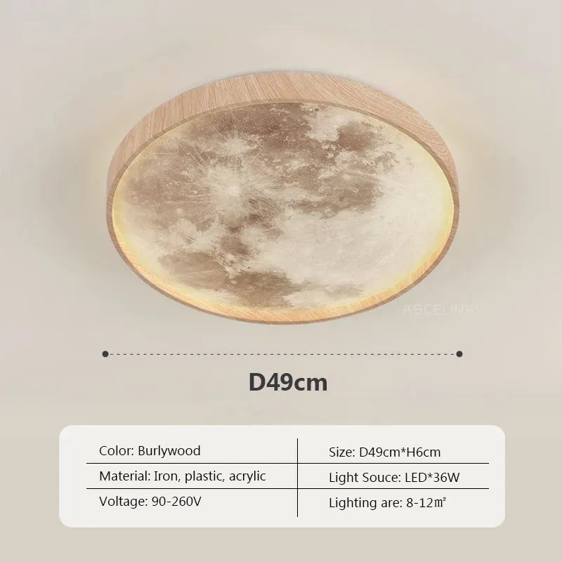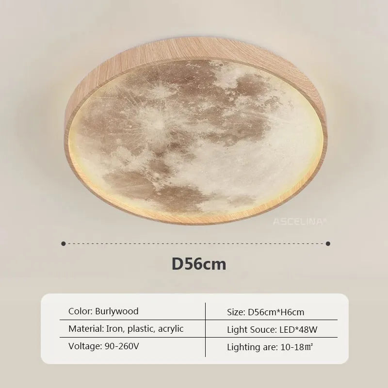 Nordic LED Ceiling Lamp - Wooden Moon Design - Ideal for Aisle, Balcony, Bedroom, Dining Room - Stylish Home Indoor Lighting Fixture