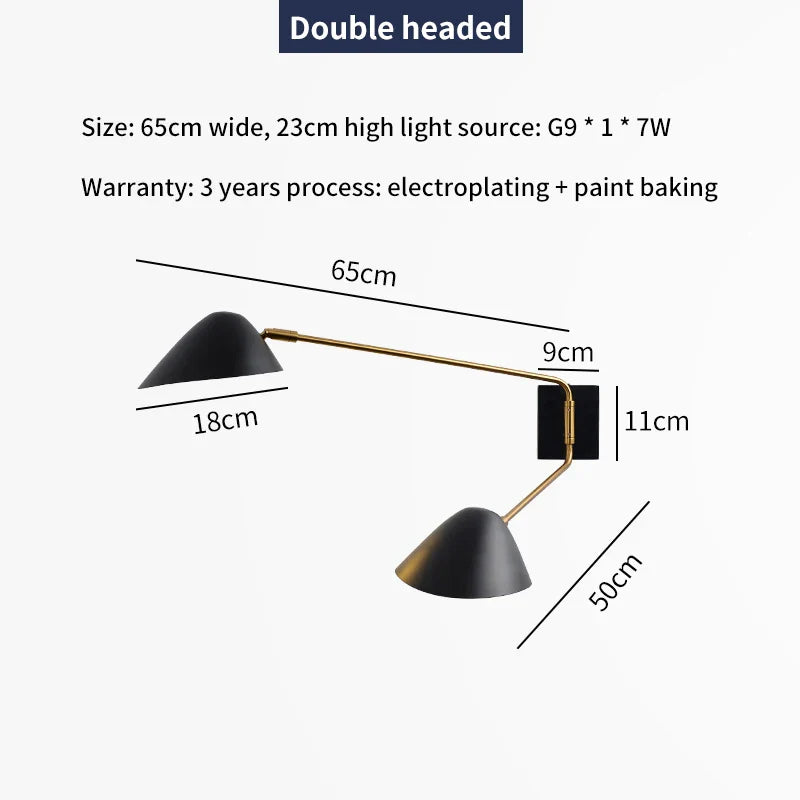Elevate the ambiance of your living spaces with our Nordic Light Luxury Double-Headed Wall Lamp. This creative fixture combines modern design with intelligent features, making it an ideal choice for bedside tables, studies, and enhancing the aesthetics of modern living rooms. The artistic long-arm design adds character to your bedroom or living room decor.