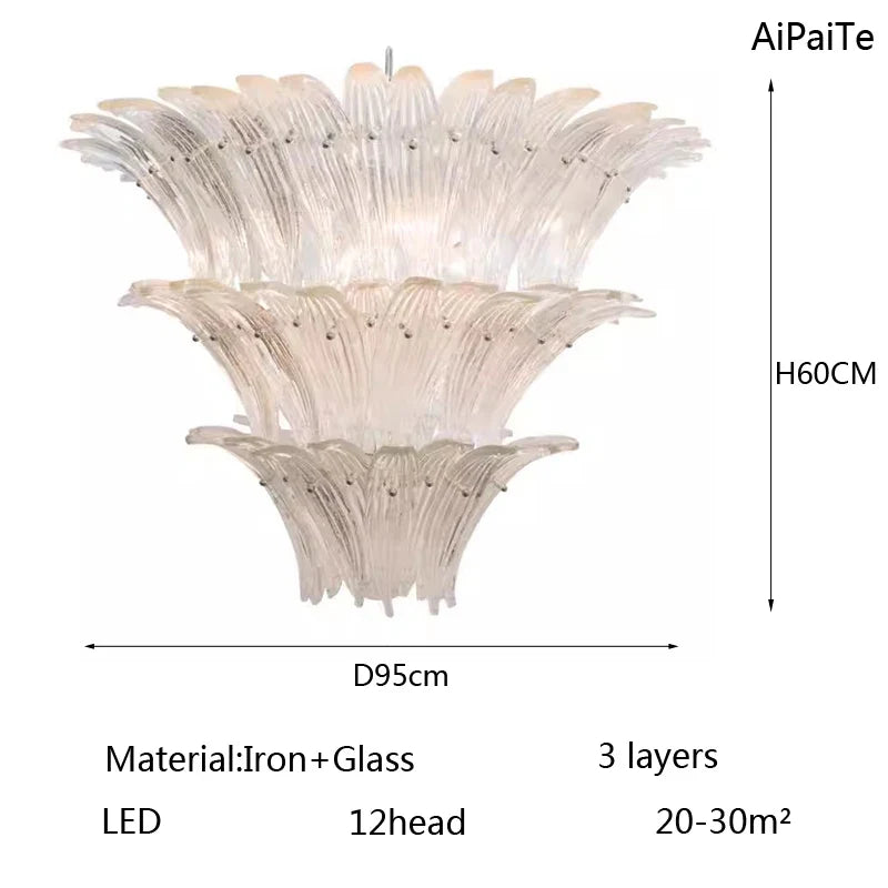Elevate your interior with the timeless elegance of the Odette French Vintage Murano Glass LED Chandelier. Featuring palm-shaped hand-blown Murano glass and a luxurious vintage finish, this chandelier brings a touch of refined charm to villas, hotel lobbies, staircases, and living rooms.