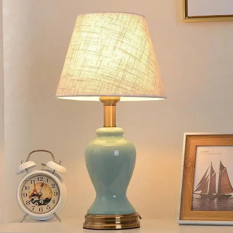 • Material: Ceramic body with fabric shade