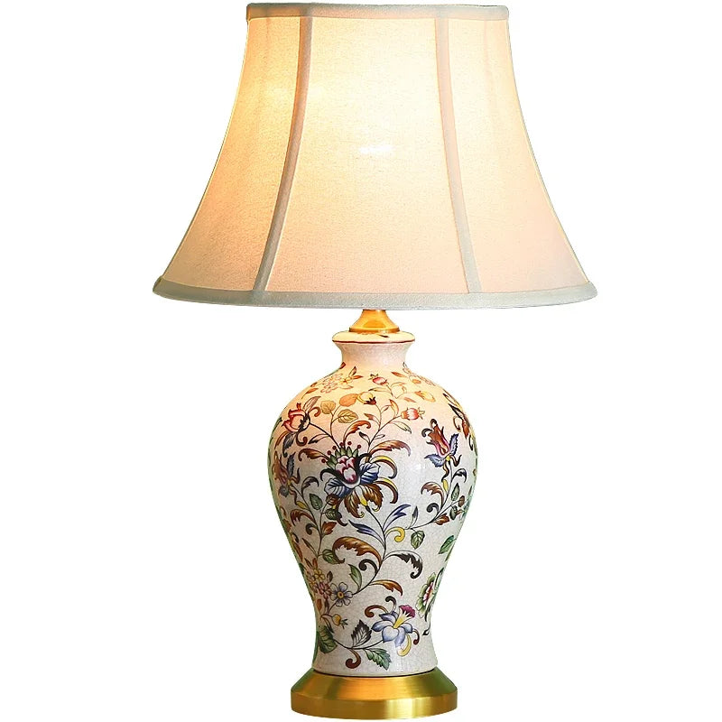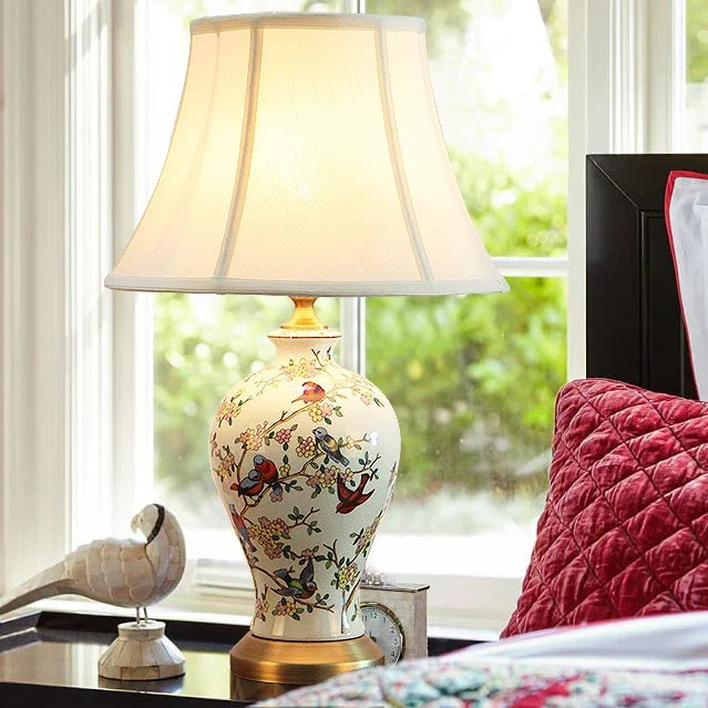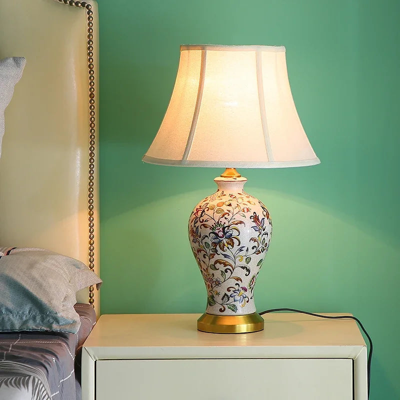 This retro-inspired ceramic floor lamp features a hand-painted decorative body paired with a pleated fabric shade, creating a warm and inviting lighting presence. Designed to add visual depth and softness to interior spaces, it delivers gentle downward illumination ideal for relaxed environments. Its artistic finish and balanced proportions make it a charming decorative light for study and bedroom settings.
