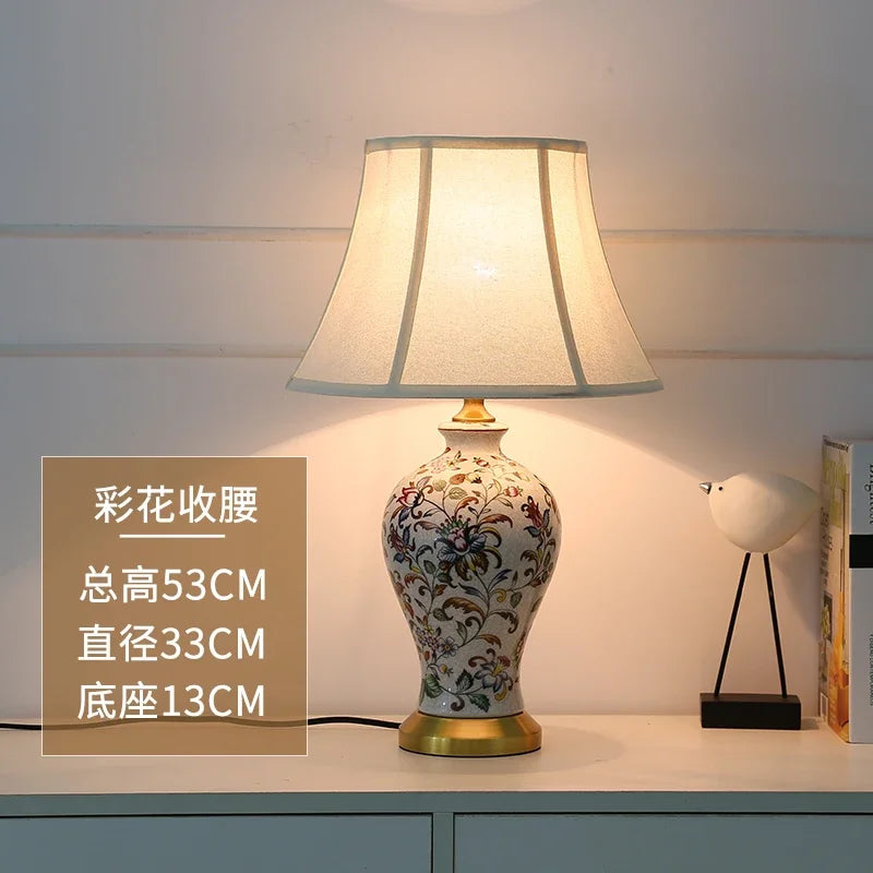 Retro Painted Ceramic LED Floor Lamp with Pleated Fabric Shade