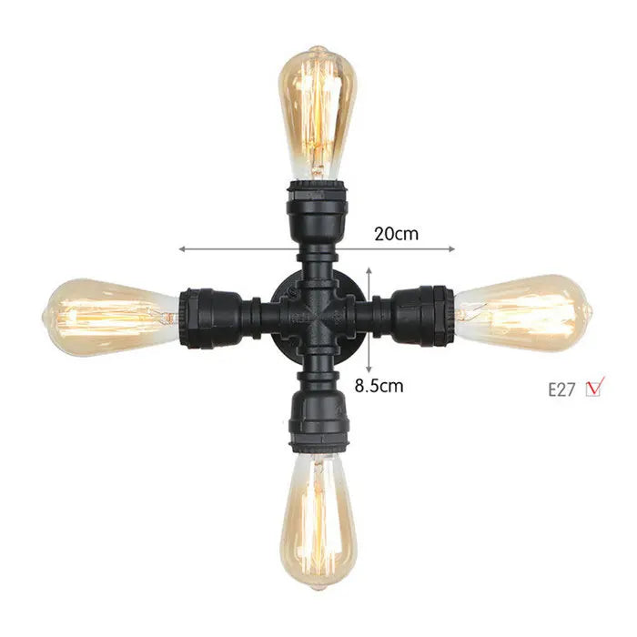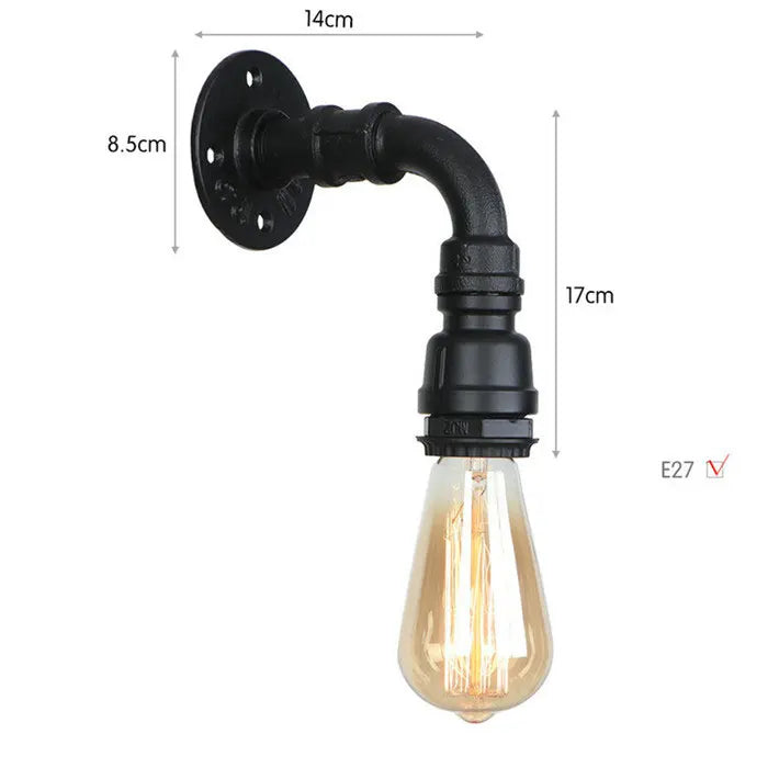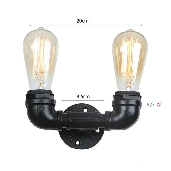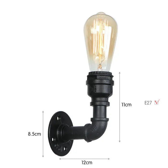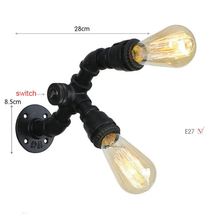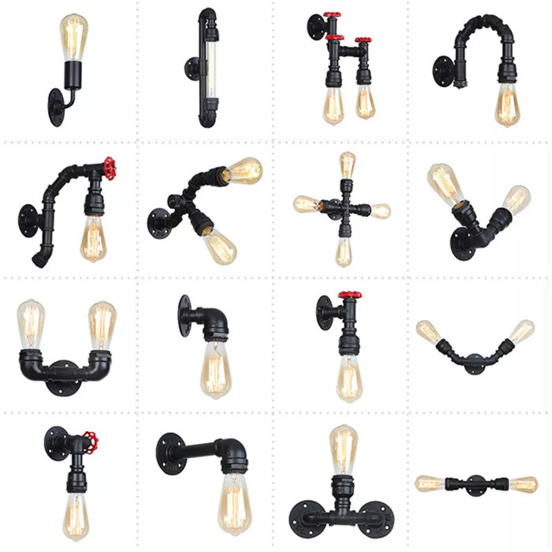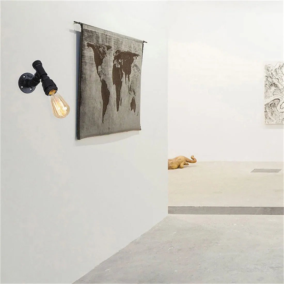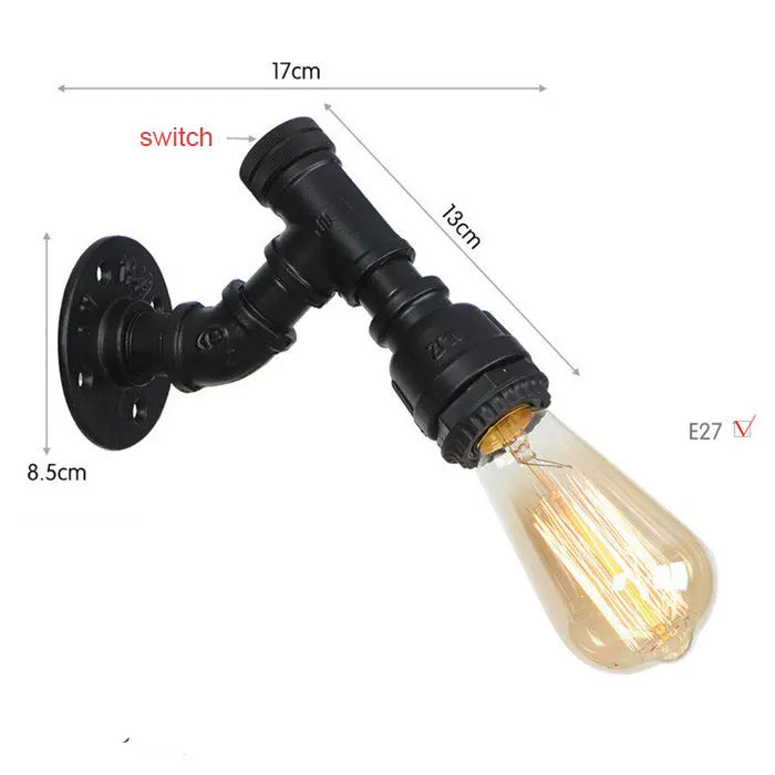 Vintage E27 Water Pipe Wall Sconces - Steampunk Wall Light Fixtures for Hallway and Basement